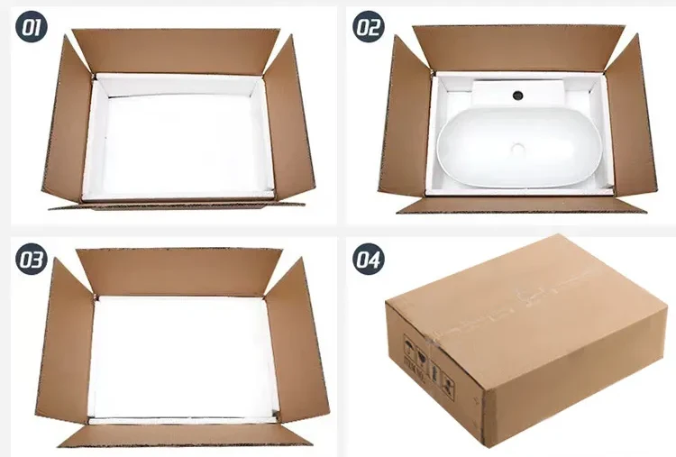 في تصميم العبوة، يجب أن نتبع في تصميم العبوة مبدأ الضغط والثبات. بعد وضع حوض السيراميك بشكل آمن في قالب الرغوة، سيتم تثبيته في الكرتون لمنع الإزاحة أثناء النقل. في الوقت نفسه، يتم أيضًا حساب حجم الكرتون بدقة لتجنب أن يكون حجم الكرتون كبيرًا جدًا بحيث لا يتسبب في اهتزاز العناصر الداخلية، أو صغيرًا جدًا بحيث لا يضغط على المنتج.