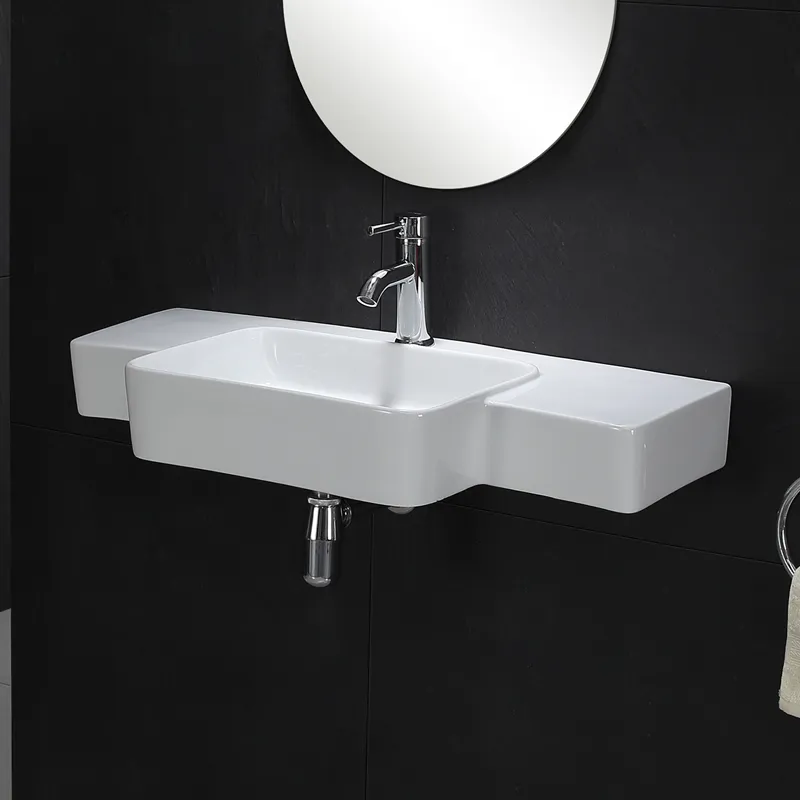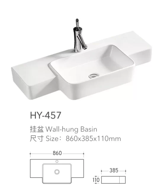 - Estética moderna y sencilla: El diseño aerodinámico y el aspecto elegante de este lavabo de baño colgado de la pared de porcelana al por mayor se puede integrar fácilmente en una variedad de estilos de baño para mejorar el estilo general del espacio.