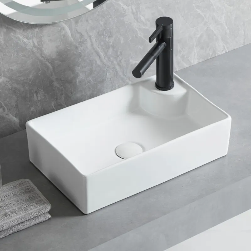 - Diseño moderno y minimalista: This wholesale bath lavatory sink has straight, clean, square edges that create a clear, sharp visual statement, suitable for modern, Nordic, minimalist, and other bathroom styles.