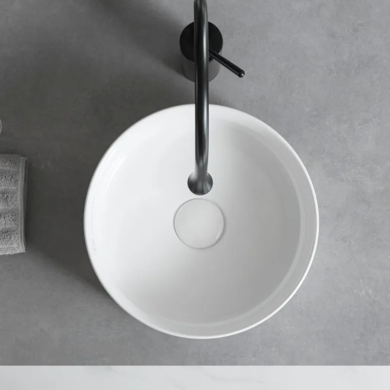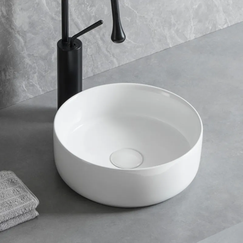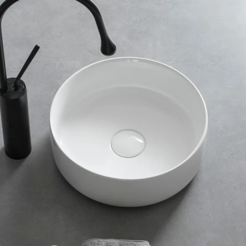 - Diseño circular, sencillo y elegante: El lavabo de cerámica al por mayor en forma redonda con líneas suaves se adaptará a otros estilos de tocadores de baño y hará que su cuarto de baño se sienta completo. Disponible en diferentes tamaños, colores, acabados de superficie, y la personalización a granel OEM / ODM.
