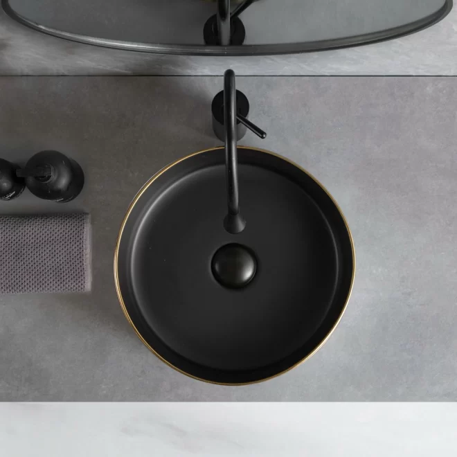 Vasques de salle de bain en céramique avec finition or mat (Wholesale)