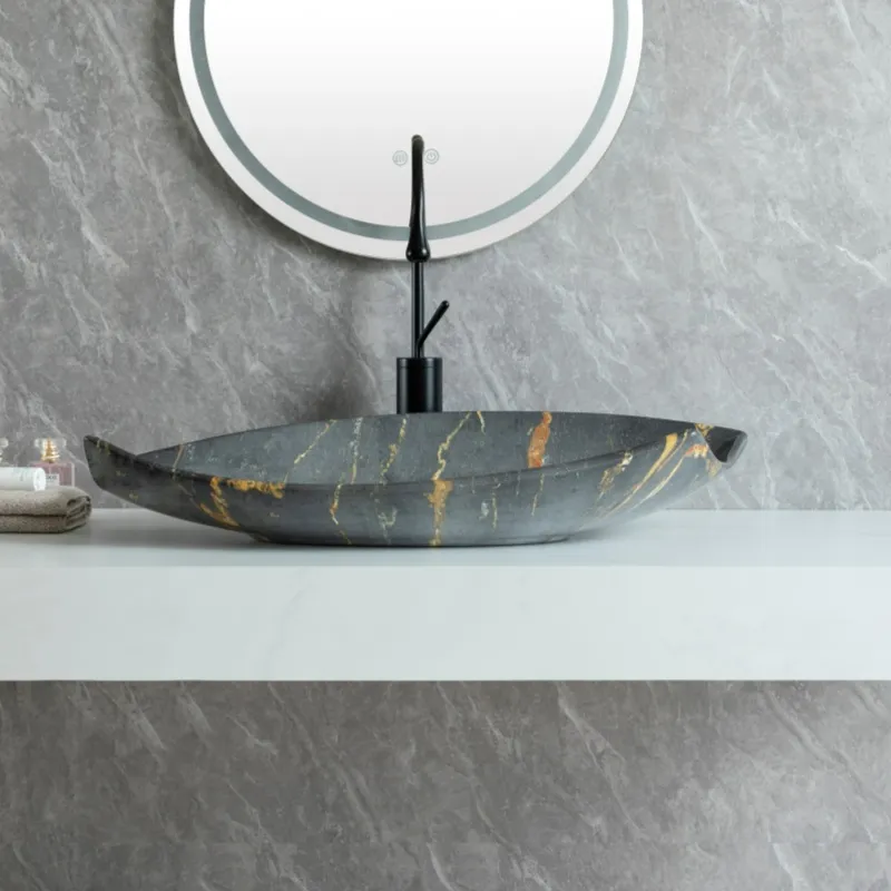 Welcome to purchase wholesale bathroom wash basins. The unique top-mounted black marble look vanity sinks add a modern feel to the bathroom and adapt to various decoration styles.