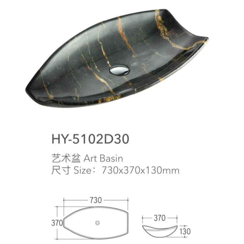 • Technologie d'impression par transfert d'eau : These wholesale bathroom wash basins adopt advanced water transfer printing technology to ensure that the surface pattern of each washbasin is fine and uniform, showing a delicate texture effect, adding a modern artistic sense to the bathroom.