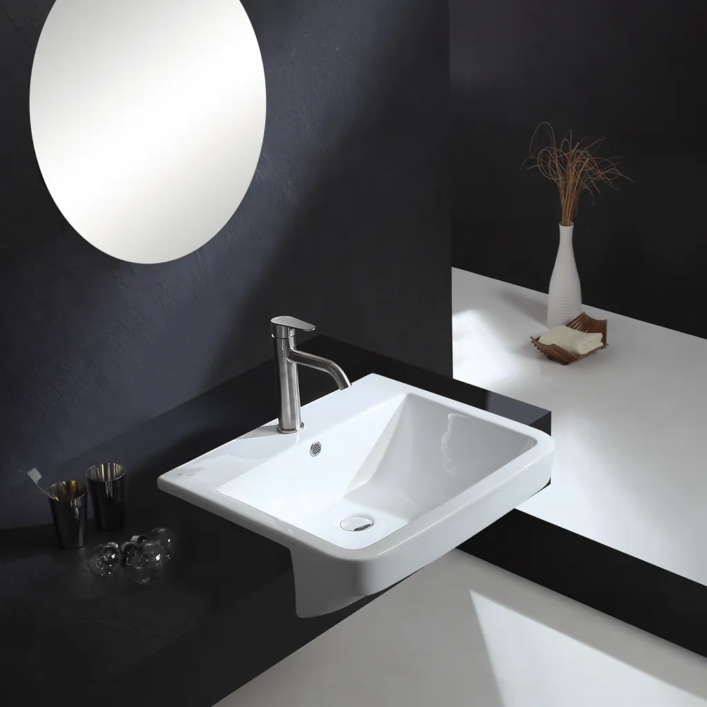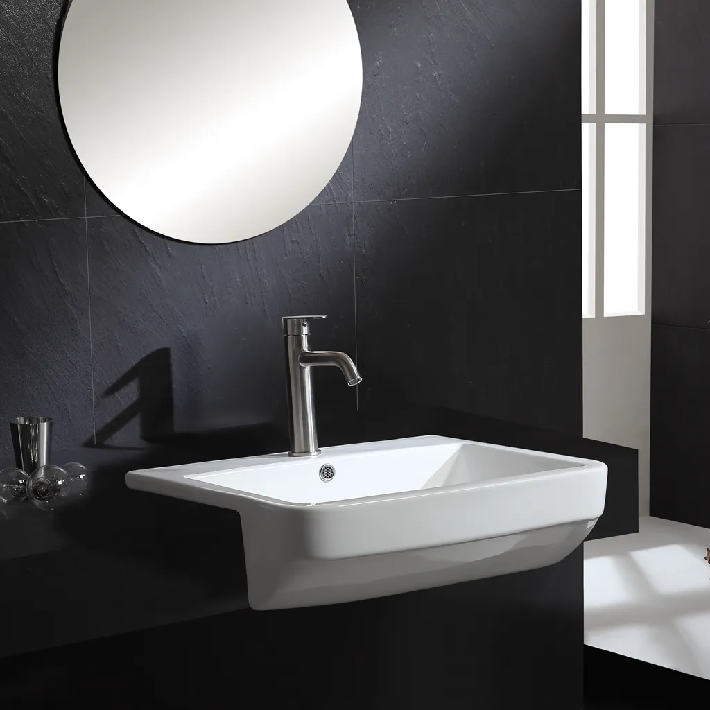- High-quality ceramic, durable and easy to clean: Our wholesale semi recessed bath sink uses high-density ceramic with a smooth and delicate glaze. It is highly durable, impact-resistant, easy to clean, stain-resistant, and will not discolor over time.