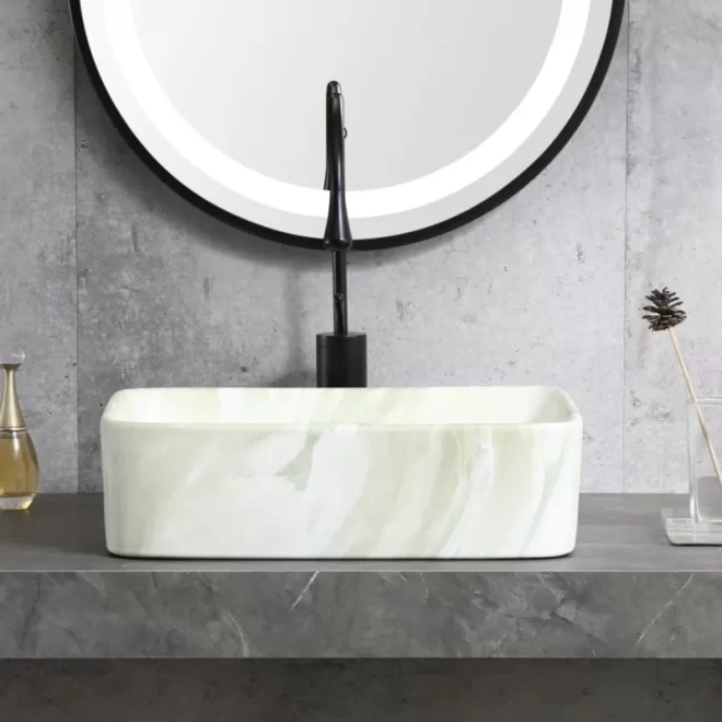 • Matériaux de haute qualité : Notre évier en gros de couleur marbre utilise des matériaux céramiques de haute qualité pour garantir que le bassin a une structure stable, une surface lisse, facile à nettoyer et une beauté à long terme.