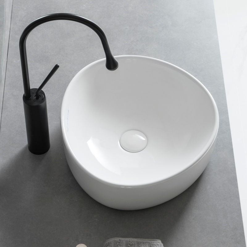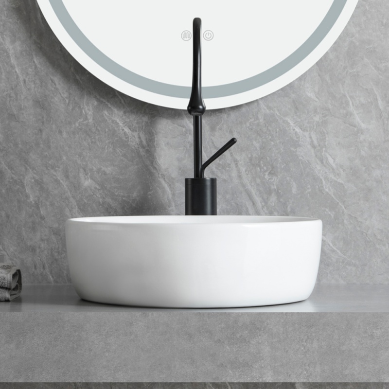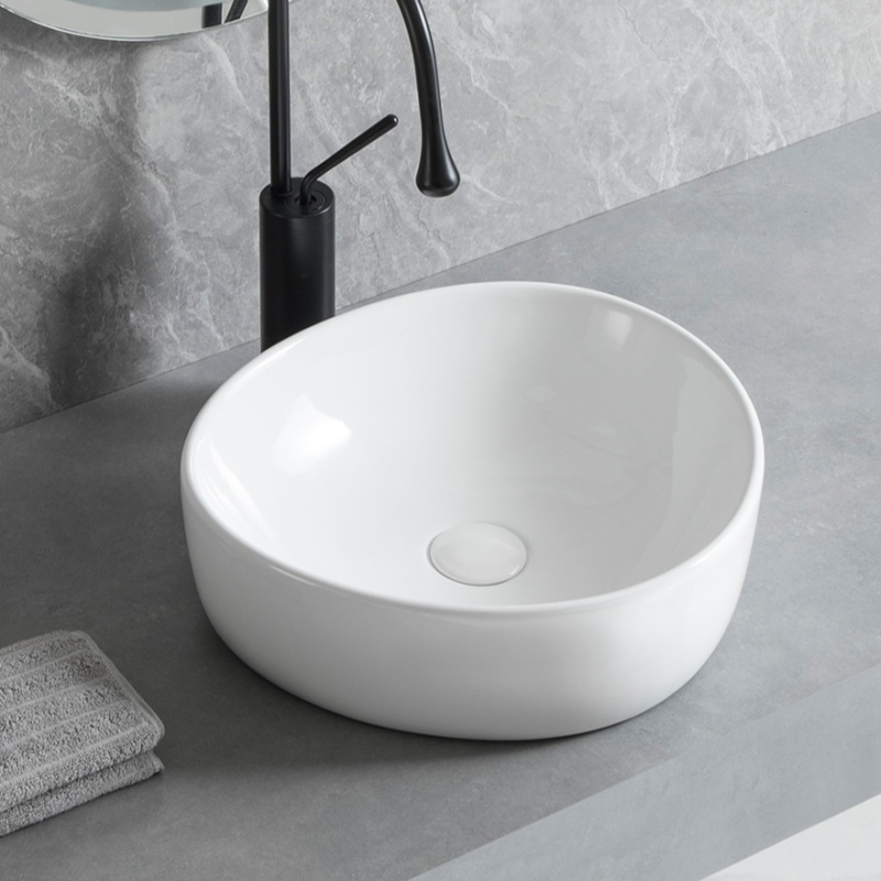 - カウンター上への設置: バルクセラミックベッセルシンクは、カウンター上のシンクとして簡単に設置できます。大理石、石英、無垢の表面など、どんなタイプのカウンターとも組み合わせられます。このタイプは設置が簡単で、バスルームをより魅力的にします。.