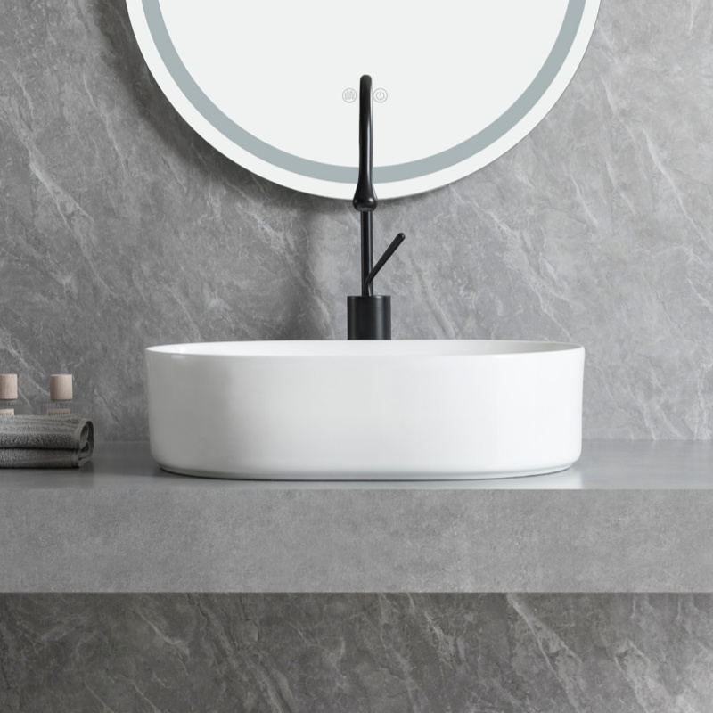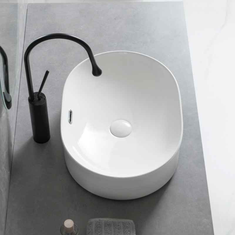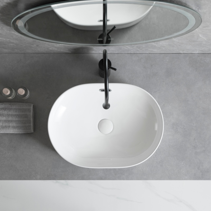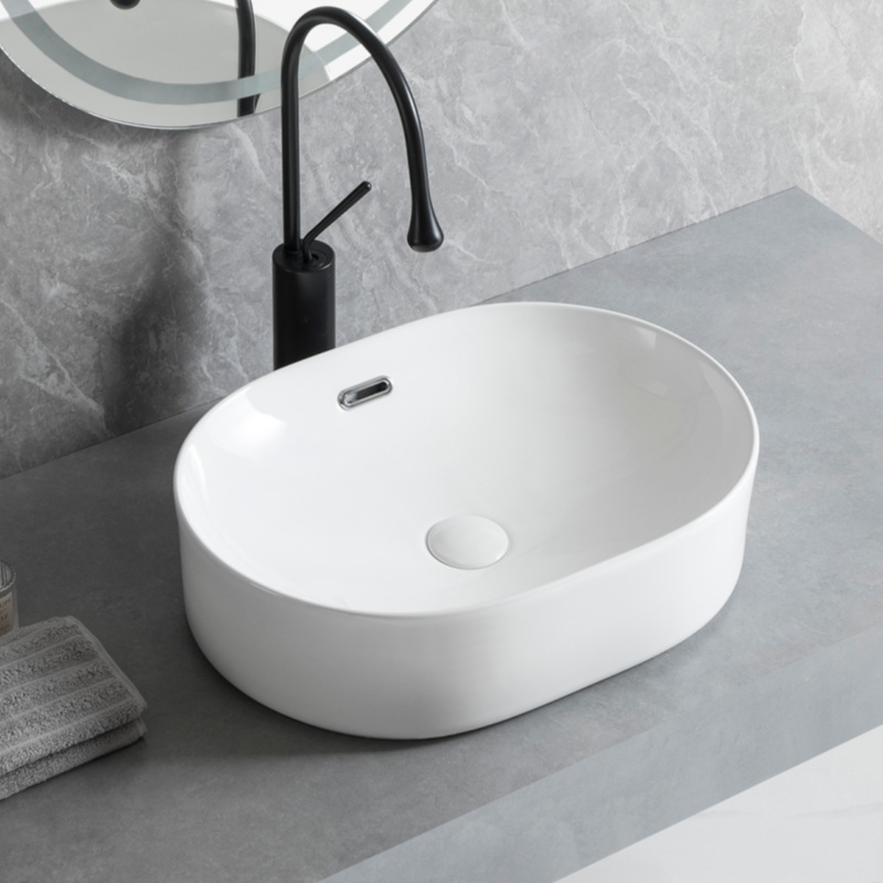 - クラシックな楕円形のカウンタートップ・デザイン: 卸売磁器浴室シンクはエレガントな楕円形をしており、モダンでミニマル、またはクラシックなバスルームのインテリアに簡単にマッチする時代を超越した汎用性の高い外観を提供し、ホスピタリティや不動産プロジェクトに人気の選択肢となっています。.