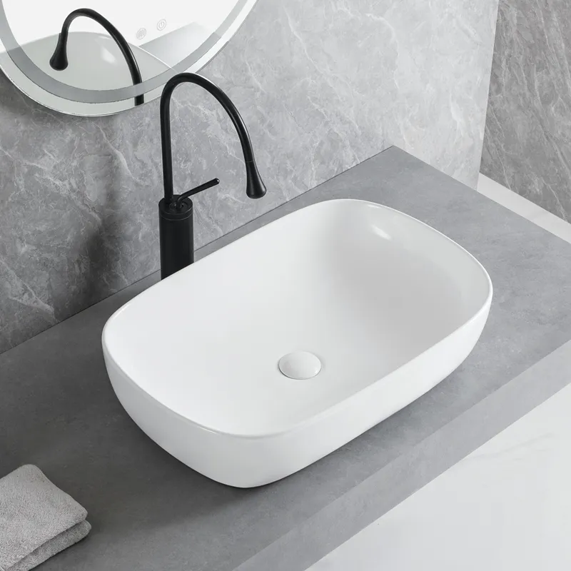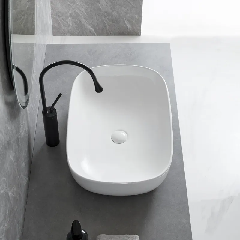 Welcome to purchase our wholesale vessel bowl bathroom sink with a modern square design and softly rounded edges, ideal for commercial and residential bathroom projects. This white above-counter ceramic basin with a smooth glazed finish offers durability, easy maintenance, and a refined appearance. Designed for supplies, customized, and project-based procurement, it is an excellent choice for hotels, apartments, and bathroom brands.