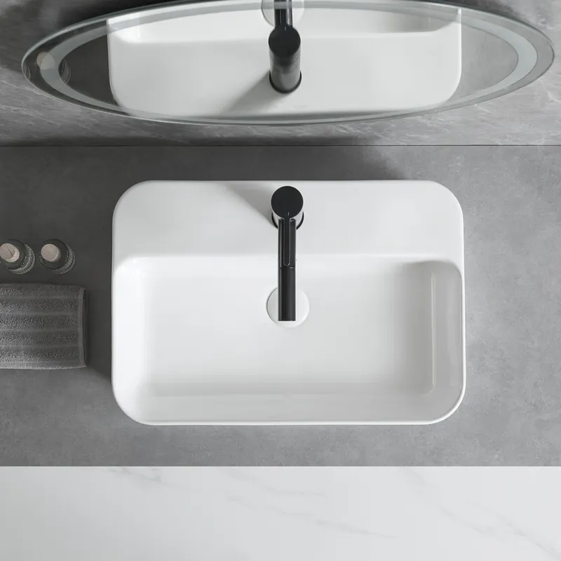 Welcome to order wholesale bathroom countertop basins. Our bulk supply ceramic sinks are solid in design and have clean lines, emphasizing a modern, minimalist design, perfect for high-end hotels and commercial use.