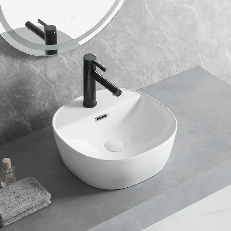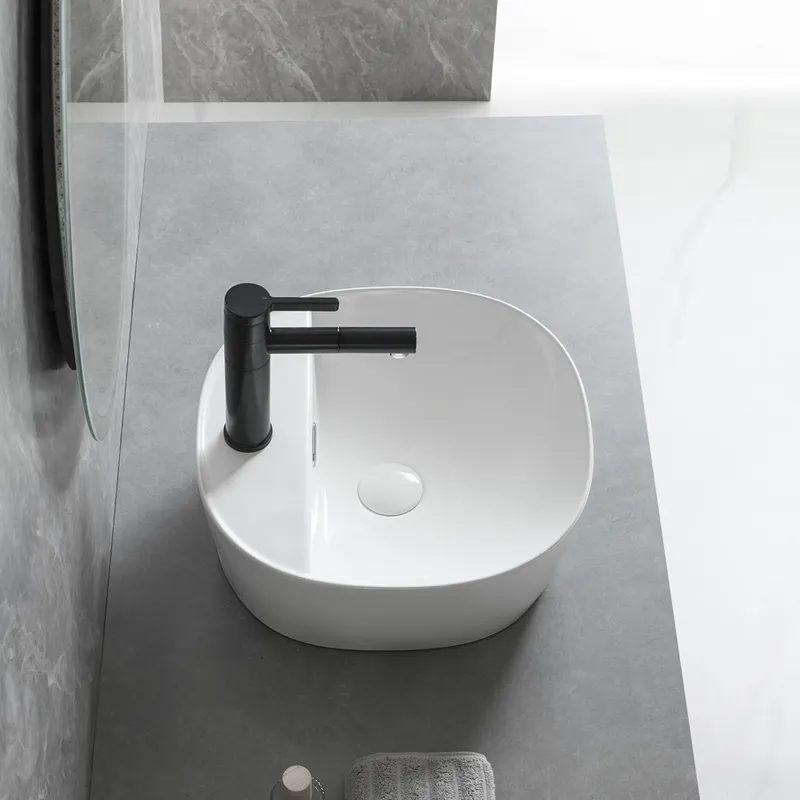• Top installation manner: This factory bulk ceramic countertop basin applies to the top installation manner, is easily installed, and operates stably and reliably. It will not only save space for the bathroom but also bring convenience in daily maintenance and cleaning and improve user experience.