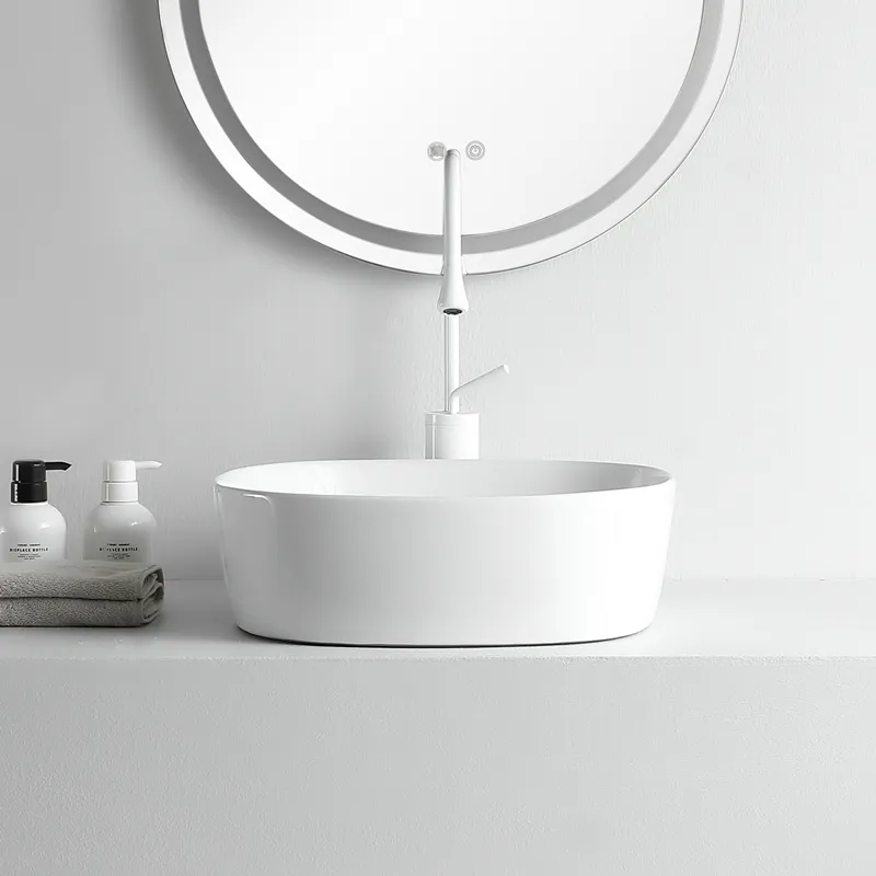 Welcome to purchase our custom countertop washbasin is made from high-quality ceramic with a smooth glazed finish, offering durability, easy maintenance, and a refined appearance. With a personalised design has a fashionable look with smooth lines, is properly designed for various bathroom styles, and brings beauty and grace to the whole area.