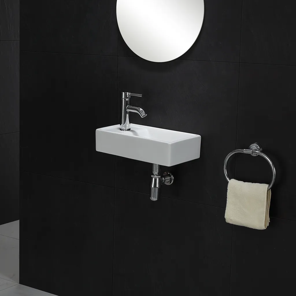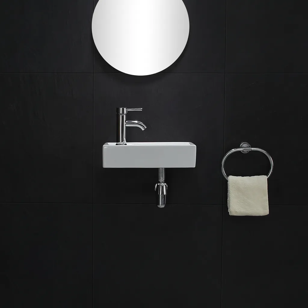 - Оптимизированный по площади дизайн: This custom small wall mounted sink is designed for small bathrooms. The mini-sized wall-mounted wash basin saves space effectively and is an ideal choice for small apartments or hotel rooms.