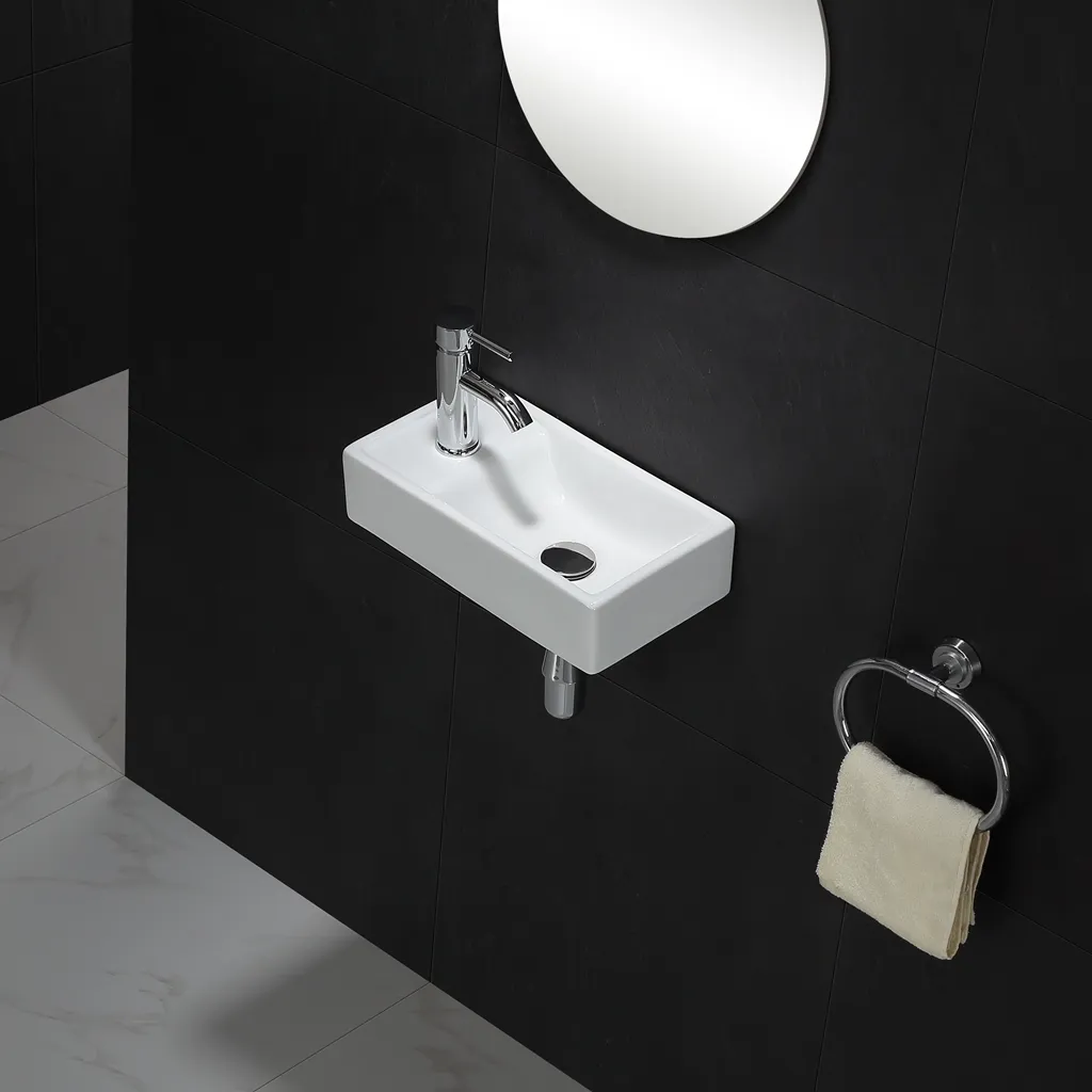 Welcome to purchase this custom small wall mounted sink with consistent quality, fast lead times, and competitive wholesale pricing. Our ceramic bathroom sink in bulk using high-quality materials and exquisite craftsmanship to ensure the durability and cleaning convenience of the sink.