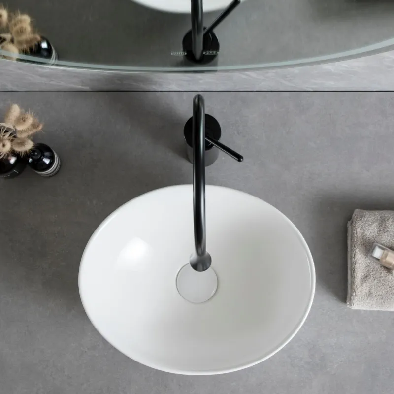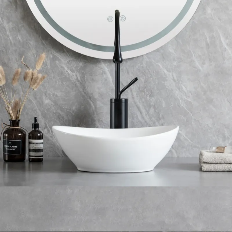• Красивый овальный дизайн: Эта овальная чаша для раковины для ванной комнаты оптом имеет плавные, красивые изгибы, которые вносят свой вклад в общий стиль ванной комнаты и дополняют различные дизайны ванных комнат.